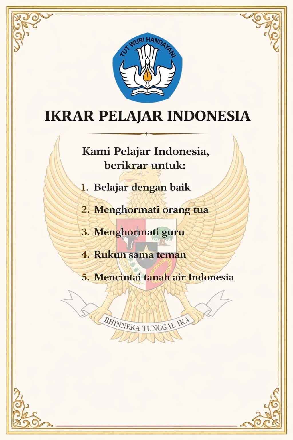 Dengan dukungan orang tua, guru, dan masyarakat, mari kita bimbing anak-anak kita untuk memegang teguh ikrar ini, demi terwujudnya generasi emas yang cerdas, berkarakter, dan bermartabat.